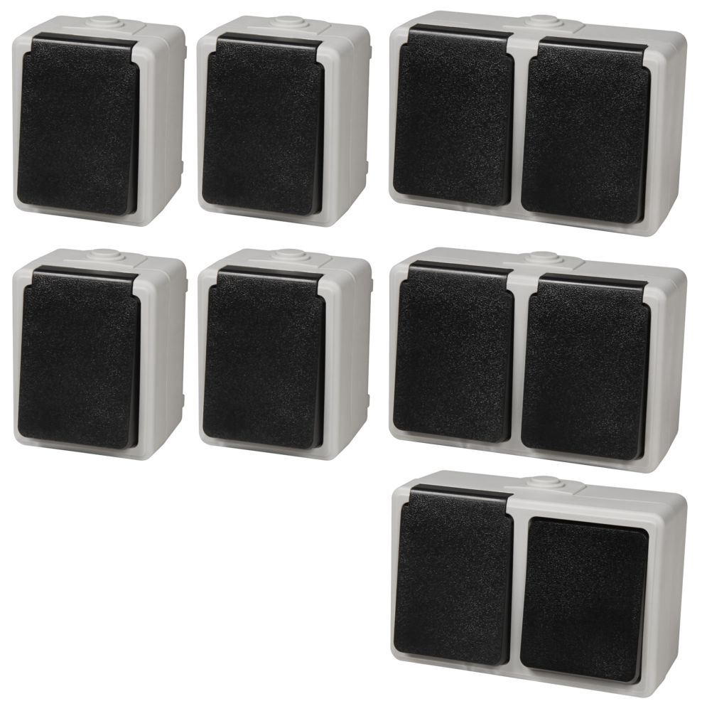- wet room double socket McPower ''Taff'', 250V~/ 16A, IP44, AP, gray, 2 pieces