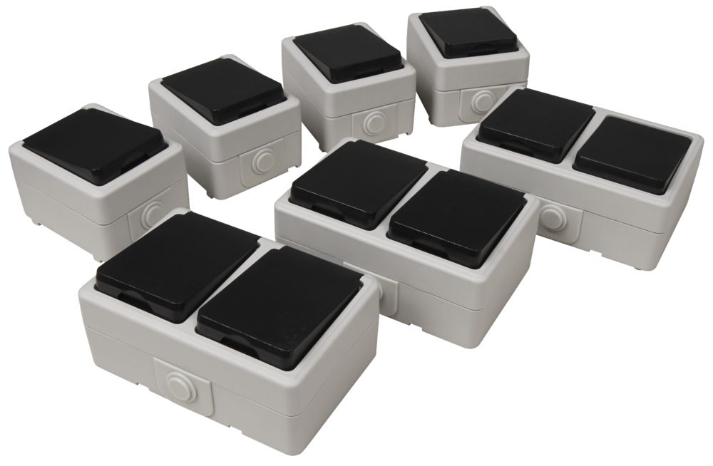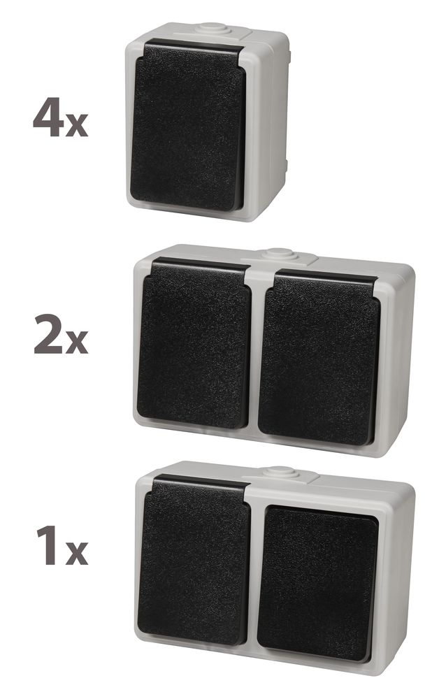 - wet room socket McPower ''Taff'', 250V~/16A, IP44, AP, gray, 4 pieces