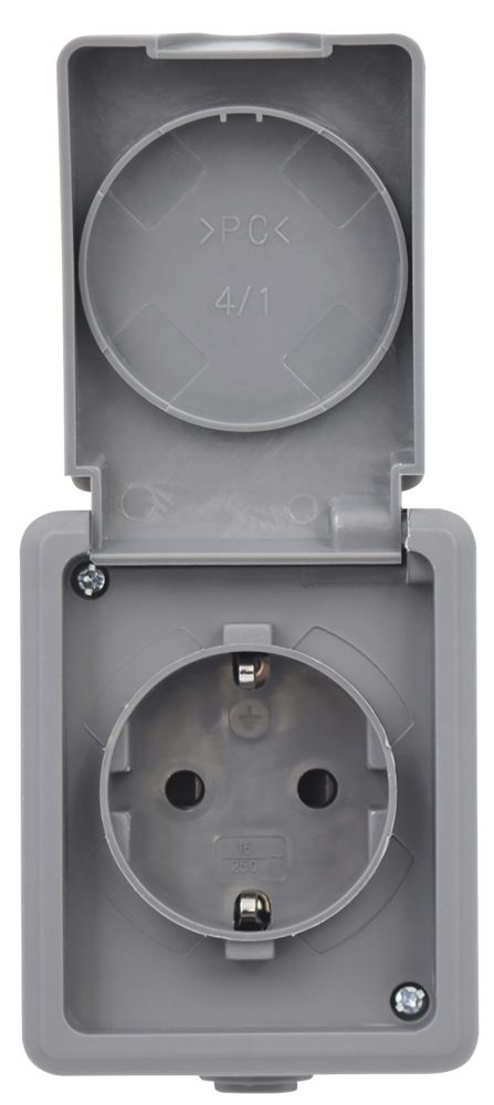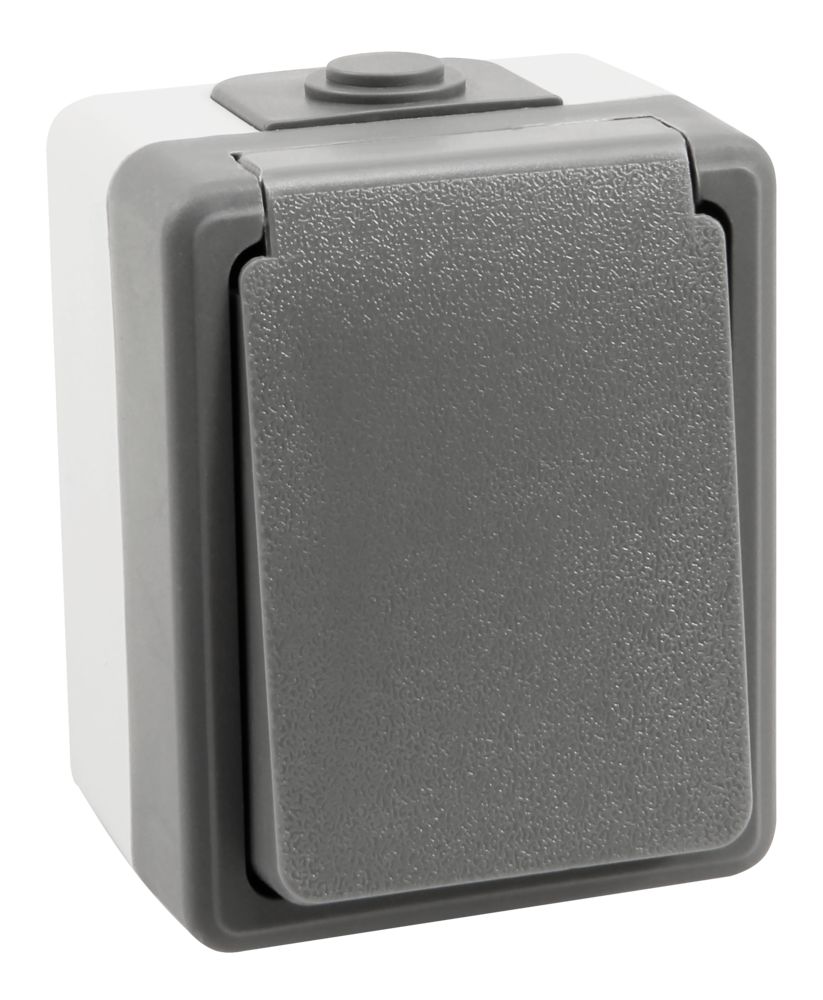 Wet room socket McPower ''Secure'', 250V~/16A, IP44, AP, gray