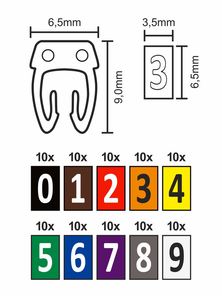 Cable marker clips McPower, printed with numbers 0-9, cable diameter up to 6mm