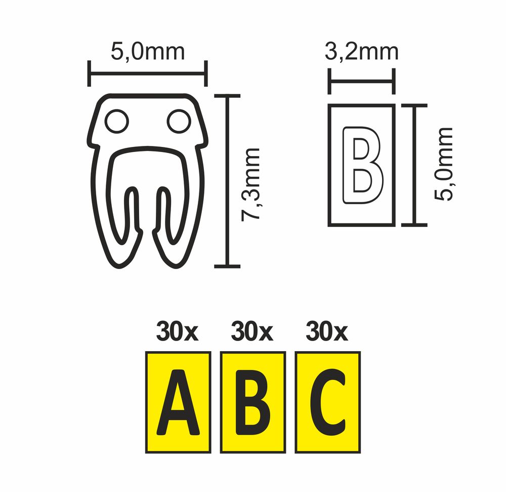 Cable marker clips McPower, printed with letters, cable diameter up to 4mm