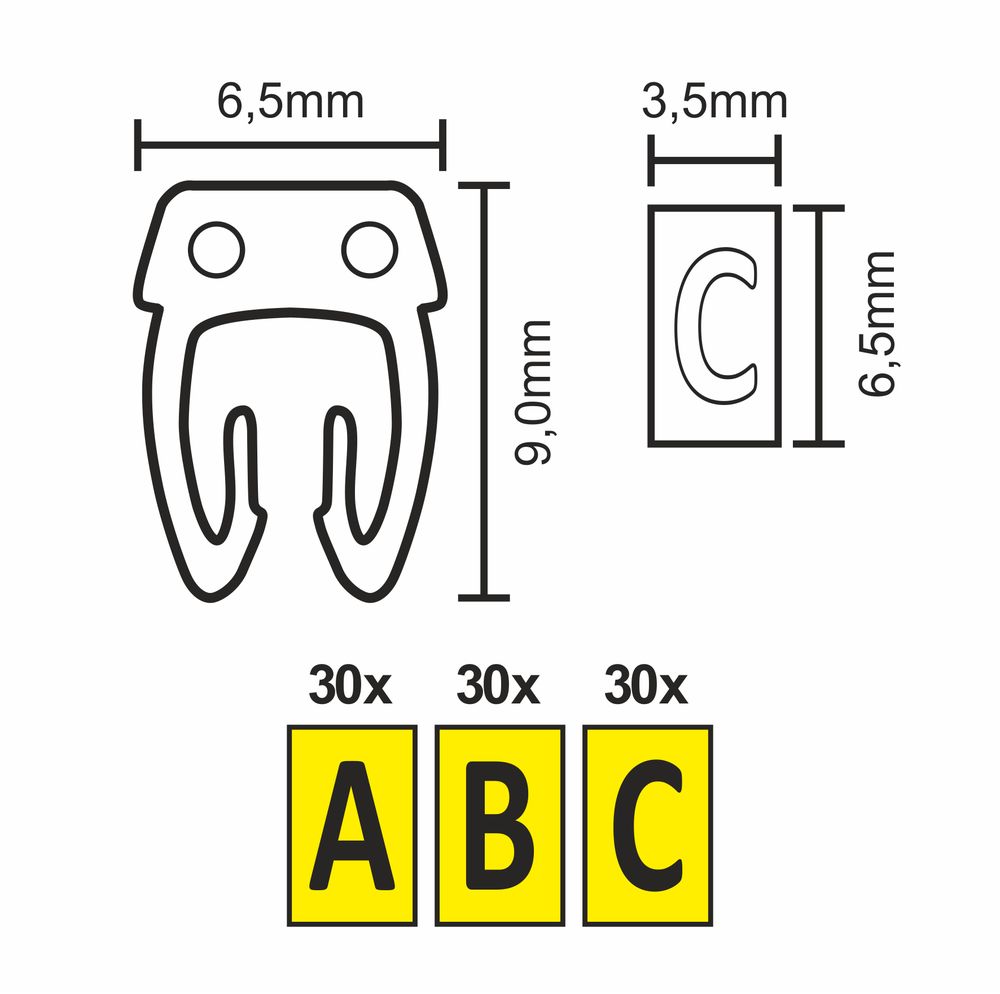 Cable marker clips McPower, printed with letters, cable diameter up to 6mm