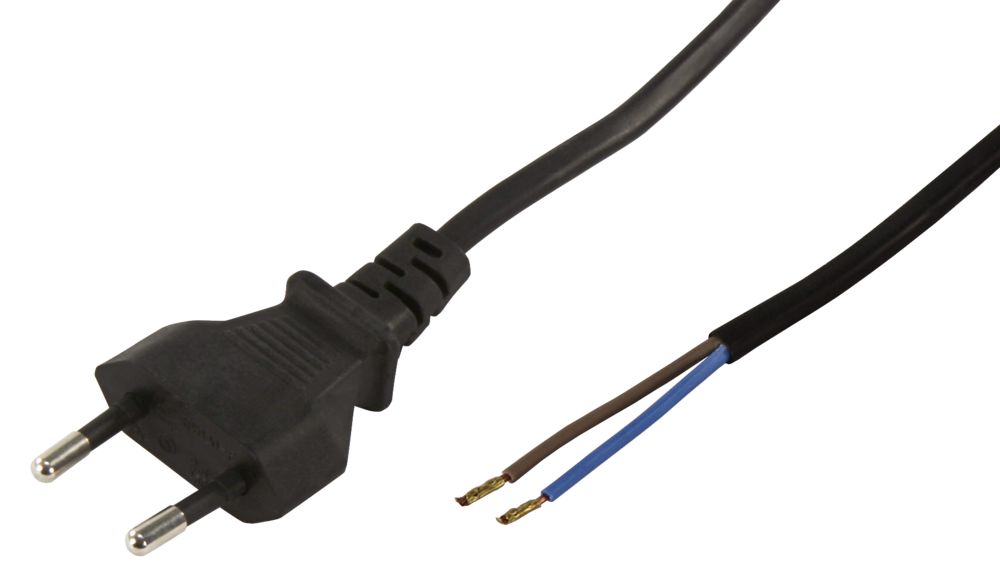 The article Euro power cable McPower with bare ends, length 1.5 m, 2x0.75 mm², black is currently in stock