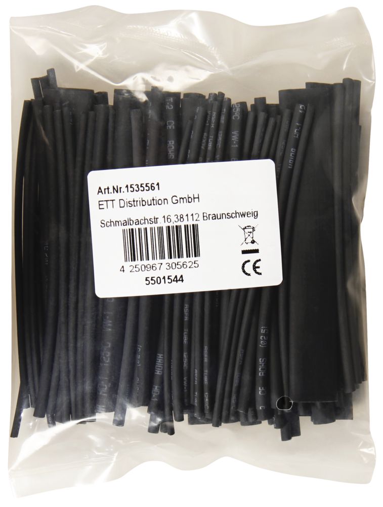 The article McPower shrink tube set, 100 pieces in an assortment bag, black is currently in stock