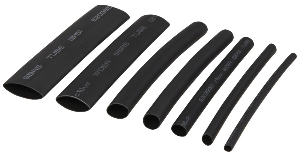 The article Adhesive shrink tube set McPower, 7 pieces in an assortment bag, black is currently in stock