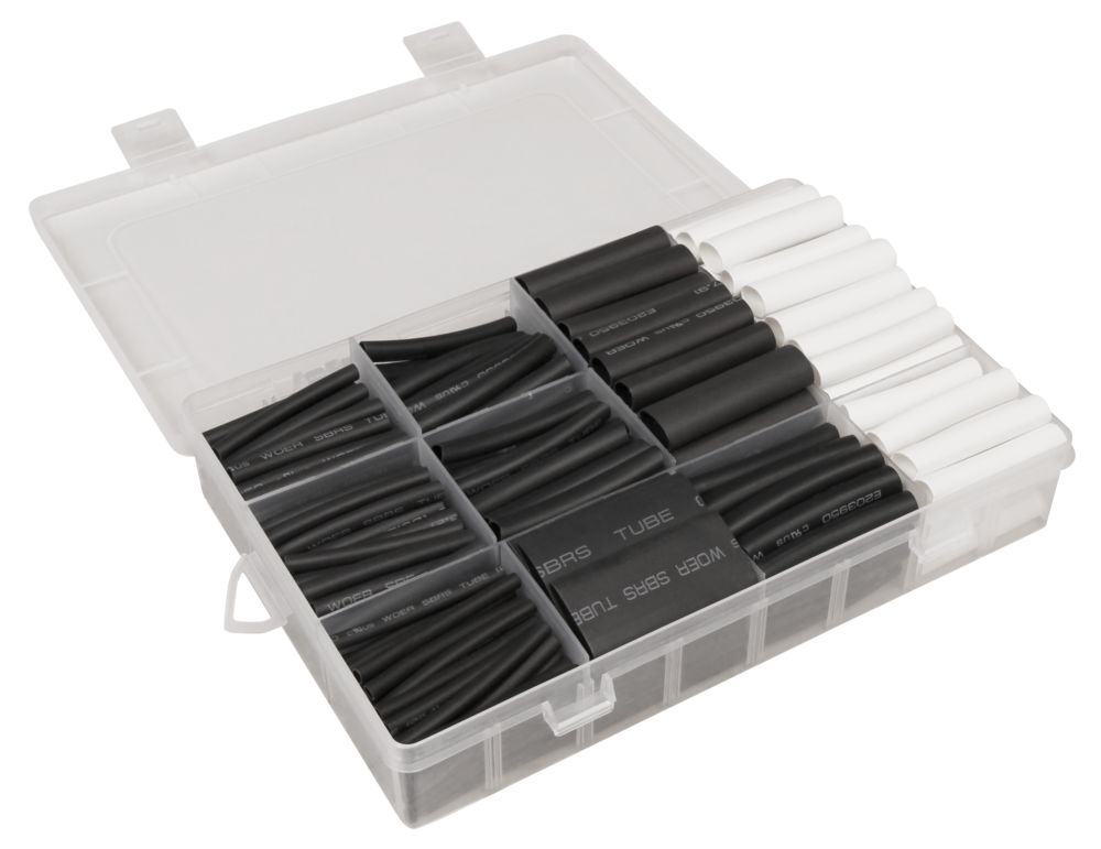 The article McPower shrink tube set, 300 pieces in an assortment box, adhesive, black/white is currently in stock