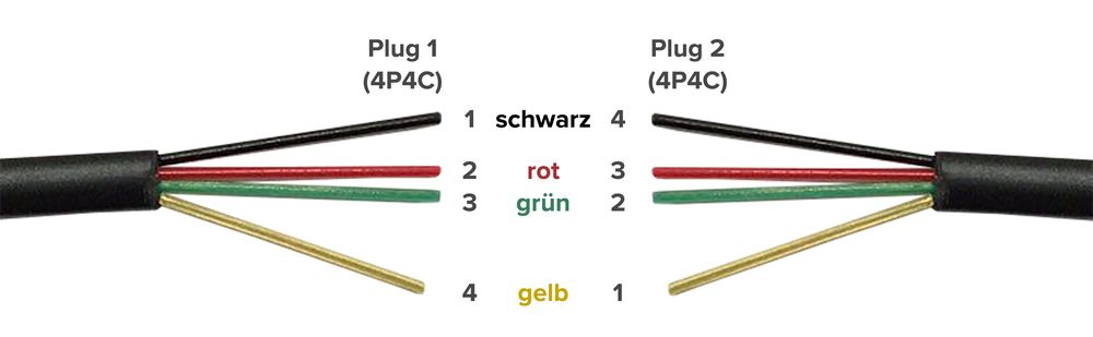 - RJ10 plug (4P4C) to RJ10 plug (4P4C)