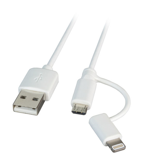 Kabel USB, A(St) => B(St)+Lightning(ST), 1,0m, USB2.0, weiß,