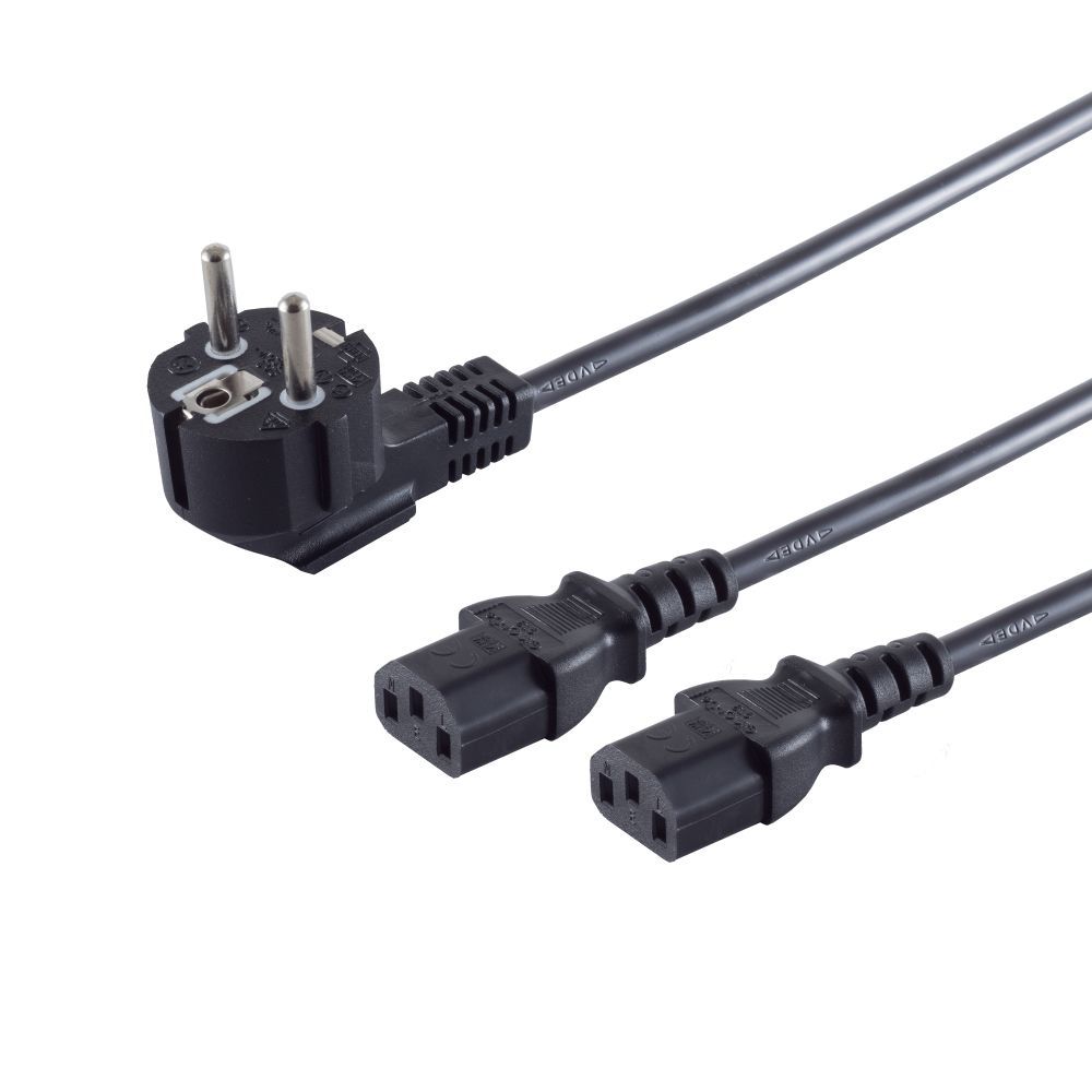 Fitting accessory for Netzkabel 230V Schutzkontakt CEE7(Stecker)->2xKaltgeräte IEC-C13(Buchse), 1,8m, Schwarz, Y-Netzanschlusskabel