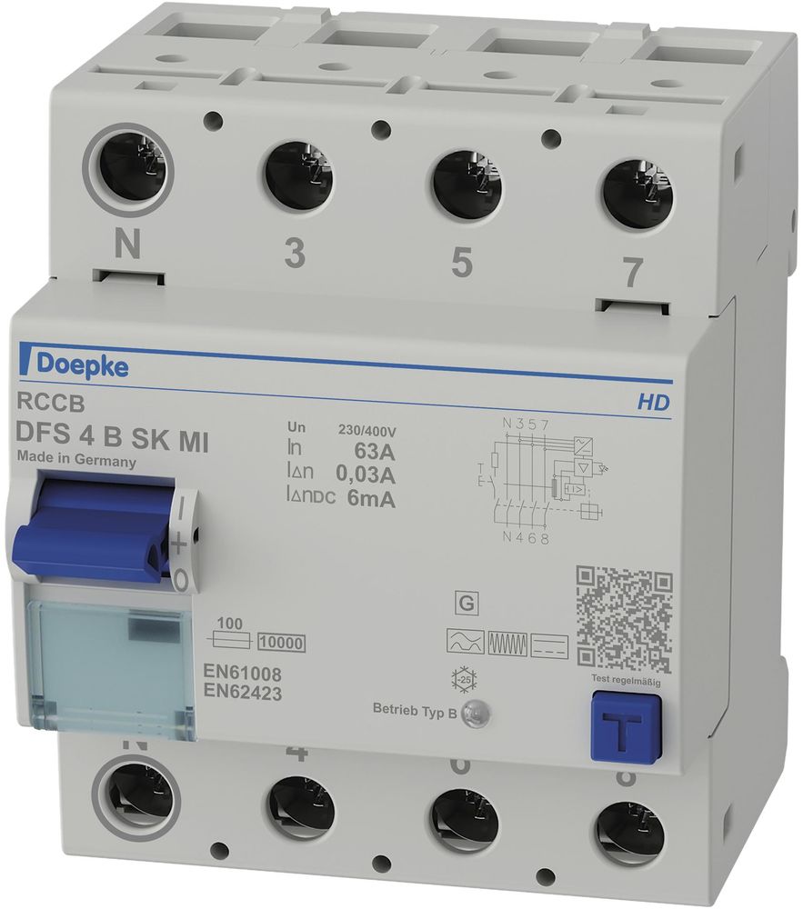 The article Doepke DFS4 063-4/0.03-B SK MI HD residual current circuit breaker 4p 09144892HD is currently