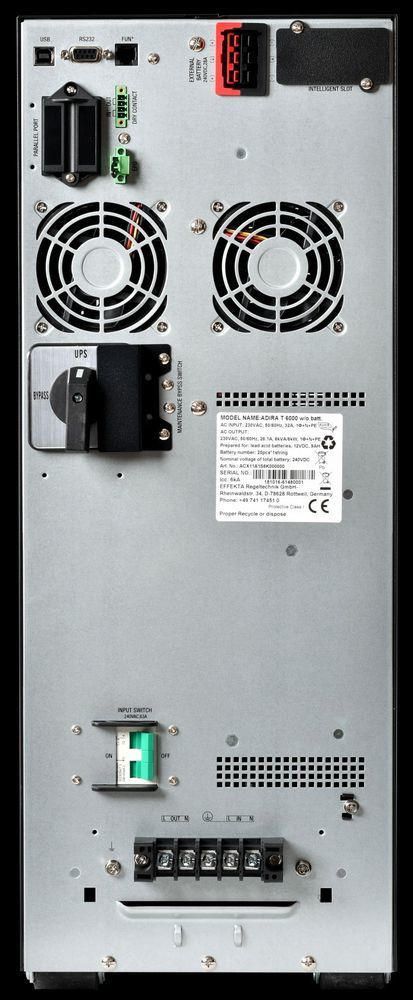 We offer you Effekta ACX11A1S6K000M08 Effecta online UPS, 6000VA, 12min at cos phi 0.7, 1/1-phase, Tower, Adira always at the best possible price. We can give you a discount of 2% on Effekta ACX11A1S6K000M08 Effecta online UPS, 6000VA, 12min at cos phi 0.7, 1/1-phase, Tower, Adira if you choose payment in advance on ordering.