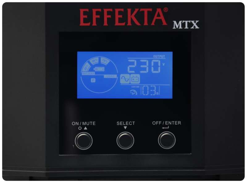 Effecta MTX Lineinteractive UPS, 1100VA, 5min at cos phi 0.7, MTX1100, USB+RS232, black, sine output