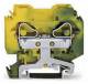 2-conductor protective conductor terminal, 16 mm², side label holders, for mounting rail 35 x 15 and 35 x 7.5, CAGE CLAMP®, 16.00 mm², green-yellow Sales unit: 50 pieces Lieske Part No.: 617454