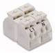 4-conductor device connection terminal, 2-pole, L1-N, without PE contact, for self-tapping screw Ø 2.9 mm from below, with 2x pin, 4 mm², 4.00 mm², white Sales unit: 500 pieces Lieske Part No.: 1966261