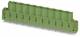 Mounting frame, nominal cross section: 2.5 mm², color: green, number of potentials: 8, number of rows: 1, number of poles: 8, number of connections: 8, article family: IC-DFR, pitch: 5.08 mm, packaging type: packed in a cardboard box, this mounting frame is only to be used in combination with IC 2.5/...-STGF-5.08 Sales unit: 50 pieces Lieske Part No.: 1233792