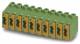 Direct plug-in block, nominal cross section: 6 mm², color: green, nominal current: 41 A, rated voltage (III/2): 1000 V, contact surface: silver, contact type: socket, number of potentials: 9, number of rows: 1, number of poles: 9, number of connections: 9, product family: PCU 6/..-STD, pitch: 10.16 mm, connection type: screw connection with tension sleeve, screw attack form: L longitudinal slot, mounting: direct mounting, connection direction conductor/board: 0 °, plug-in system: COMBICON PC 16, locking: without, fastening type: without, packaging type: packed in a box Sales unit: 50 pieces Lieske Part No.: 1233043