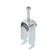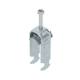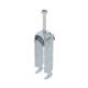 U-clamp with hammer head base, plastic pressure tray made of polypropylene. For vertical and horizontal mounting of 2 individual cables on C-profile rail. For slot width 16 - 17 mm. With 1-start screw on pressure tray, universal hexagon screw head SW10, with slot and Phillips. Suitable for indoor and outdoor installation. Multiple cables should be separated by double trays. The use of a counter tray is recommended. Sales unit: 50 pieces Lieske Part No.: 1102719