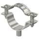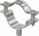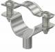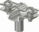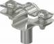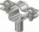 Spacer clamp for mounting pipes and cables on walls, ceilings and floors. With self-locking upper part. Fastening via attachment with internal thread. Surfaces G and FT from clamp size 20 suitable for mounting with a nail gun or bolt setting tool.