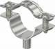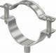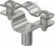 Spacer clamp for mounting pipes and cables on walls, ceilings and floors. With self-locking upper part. Fastened via attachment with internal thread.