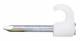Nail clamp TC10-14 (2.0/45/32) WHITE (100 pieces/pack). Safety pins bend these instead of breaking. Extremely impact-resistant and at the same time highly resistant to heat, cold and acid. Flexible - each clamp type covers several cable cross-sections. Pins in different thicknesses, made of both galvanized steel and stainless steel. Large range of clamps in different designs and colors, with different dimensions and pins. Clamp holds itself on the cable (clip property). Clamps: impact-resistant PP (polypropylene) UV-resistant / halogen-free Pins: hardened and galvanized steel. Sales unit: 100 pieces Lieske Part No.: 1857832