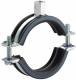 Galvanized pipe clamp with threaded combination nut and soundproofing insert, for use with non-insulated metal pipes. Use with pipe 58-68mm M8/M10 thread.