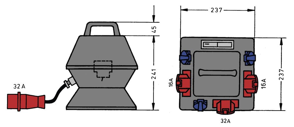 Elektra Tailfingen 189757 Elektra outlet manifold SV 32/321, CEE plug 32A 5-pole 40A 30mA RCD