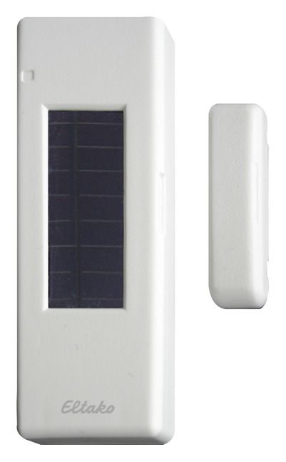 Wireless window/door contact with solar cell and battery (lifespan 8 years) 75x25x12mm. Fastened by gluing. Wireless window/door contact with solar cell and battery 75x25x12mm. The window/door contact FTKB supplies itself with a solar cell when there is 100