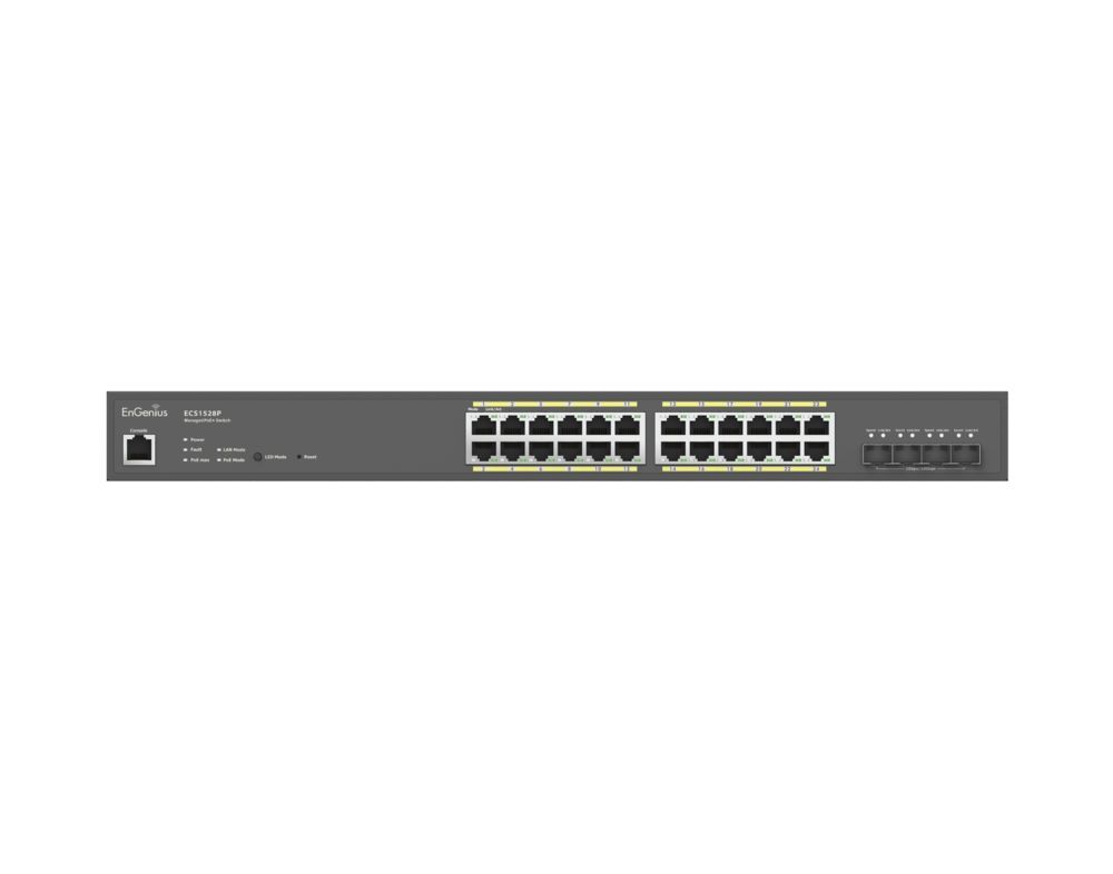 - Continuous PoE power for cameras during switch updates 28-port • 24x 1GbE • 240W • 24x PoE+ at • 4x SFP+ • 48,3 cm ( 19 inch ) • EnGenius Cloud, on premise