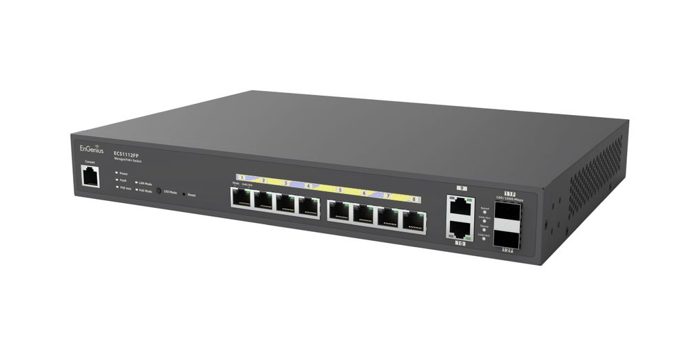 We offer you EnGenius Switch fully managed Layer2+ 12 Port? 8x 1GbE? PoE budget 130W? 8x PoE at ? 2x GbE, 2x SFP? 33 cm ( 13 inch ) ? ECS1112FP ? EnGenius Cloud always at the best possible price. We can give you a discount of 2% on EnGenius Switch fully managed Layer2+ 12 Port? 8x 1GbE? PoE budget 130W? 8x PoE at ? 2x GbE, 2x SFP? 33 cm ( 13 inch ) ? ECS1112FP ? EnGenius Cloud if you choose payment in advance on ordering.