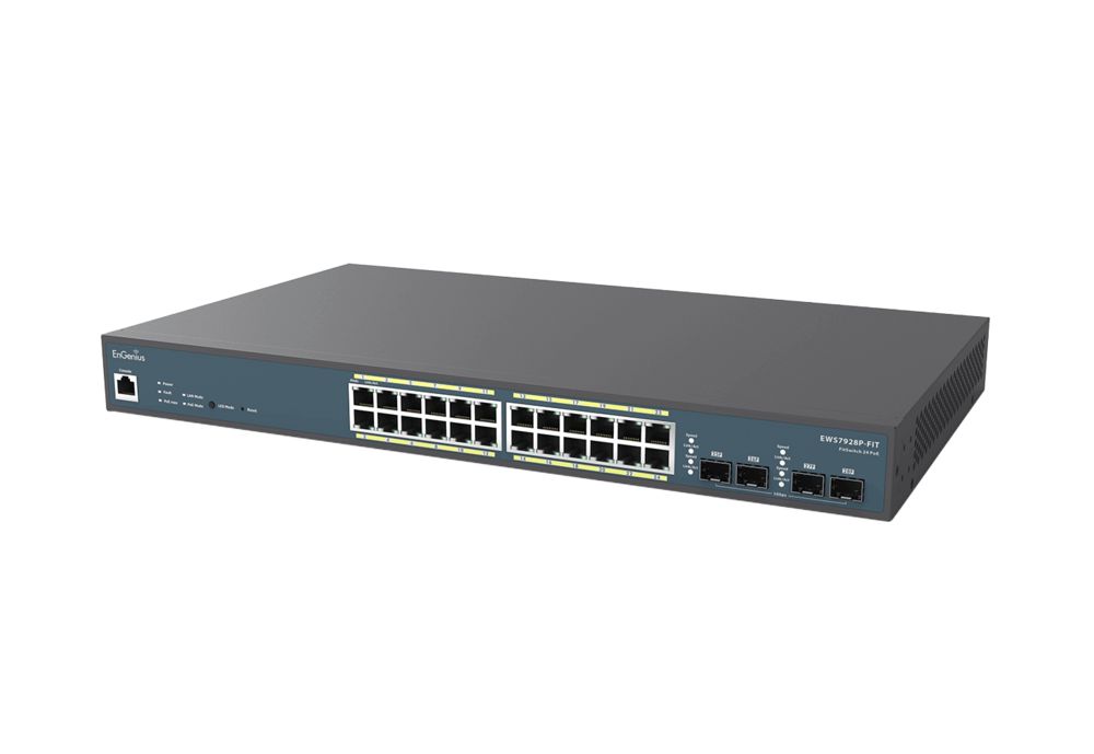 EnGenius Switch fully managed Layer 2+ 28 Port ? 24x 1GbE? PoE Budget 240W? 24x PoE at ? 4x SFP? 48,3 cm ( 19 inch ) ? EWS7928P-FIT ? FitCon/FitXpress
