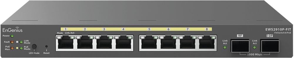 EnGenius EWS2910P-FIT Switch 8-port GbE PoE.af/at(+)55W 2xSFP Deskt.wall-mountab