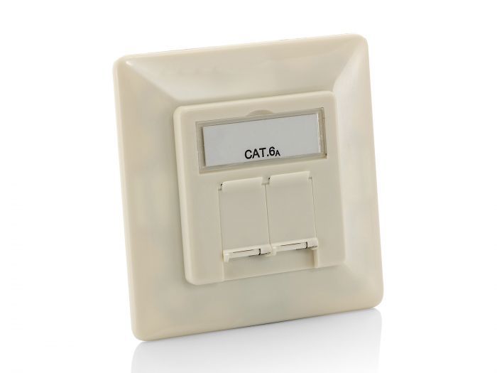 Equip surface-mounted front panel Cat6A 2x RJ45 RAL 1013 pearl white