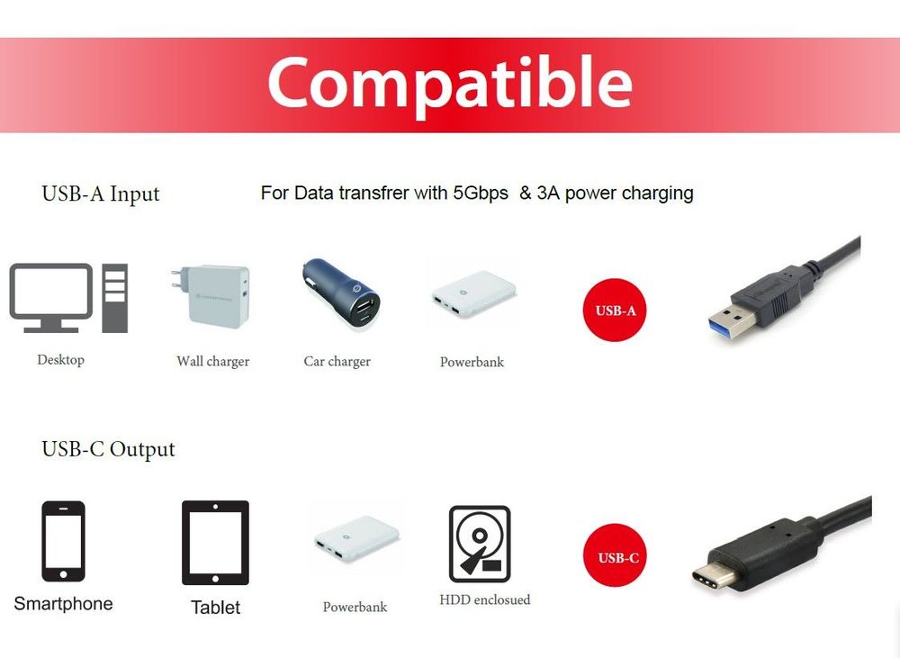 Equip cable USB-A 3.2 -> C St/St 0.25m 3A/20V sw polybag
