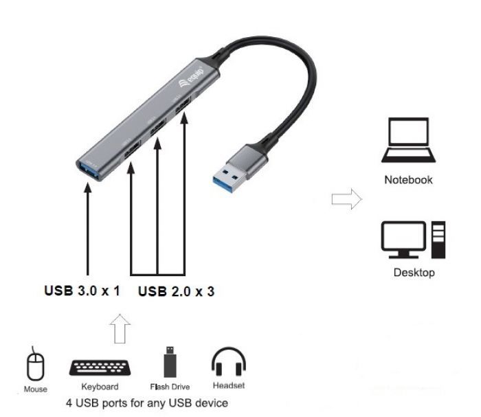 Equip USB hub 4-port 3.0 ->1x3.0,3x2.0 without power supply gray