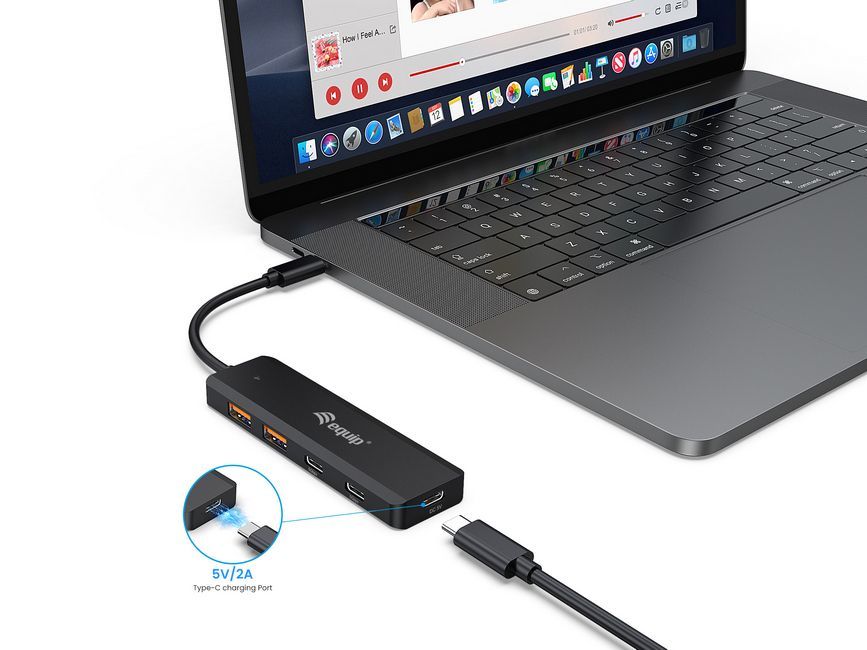 Equip USB hub 4-port 3.2/C->2xUSB-C 2xUSB-A 10Gbps without power.sw