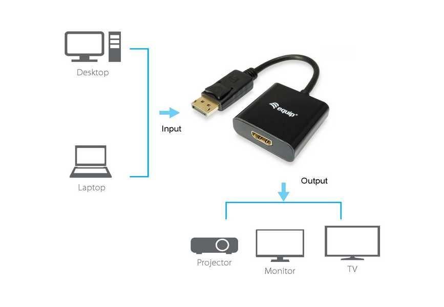 We offer you Equip Displayport->HDMI adapter St/Bu 1920x1080/60Hz black always at the best possible price. We can give you a discount of 2% on Equip Displayport->HDMI adapter St/Bu 1920x1080/60Hz black if you choose payment in advance on ordering.