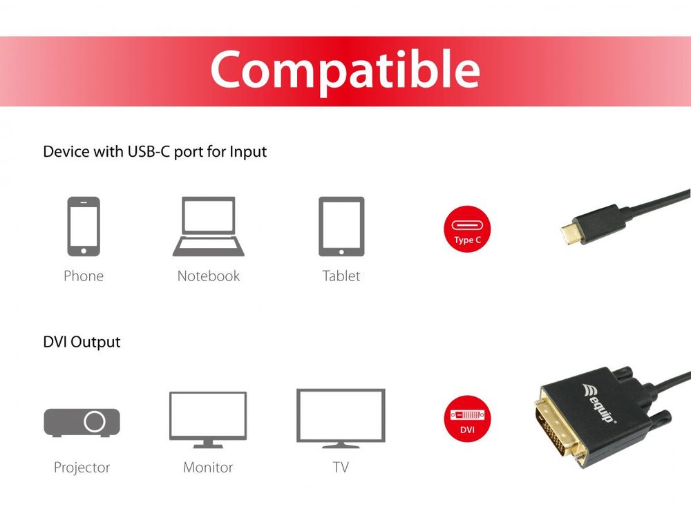 Equip adapter USB-C -> DVI-D (24+1) 1920x1200/60Hz 1.80m black polybag