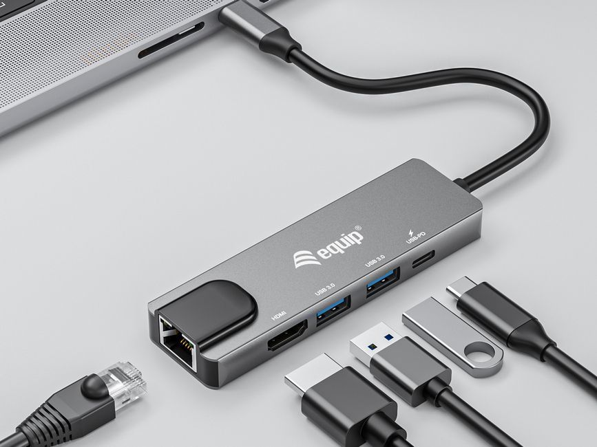 The article Equip Dock USB-C->HDMI, Gigabit LAN, 2xUSB3.0, 100WPD 0.25m is currently in stock