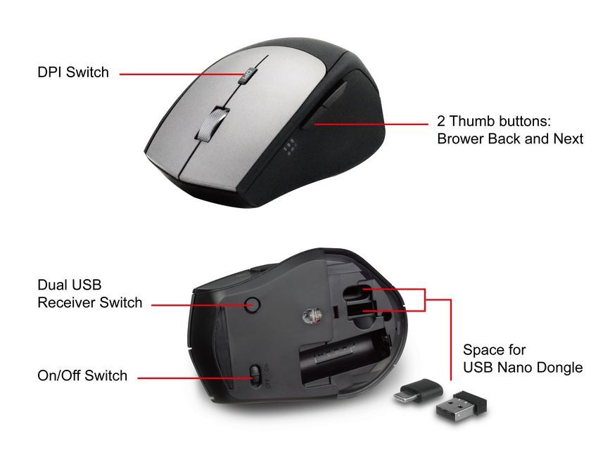 Equip Optical Mouse wireless Dual Adapter USB-C+A R+L black