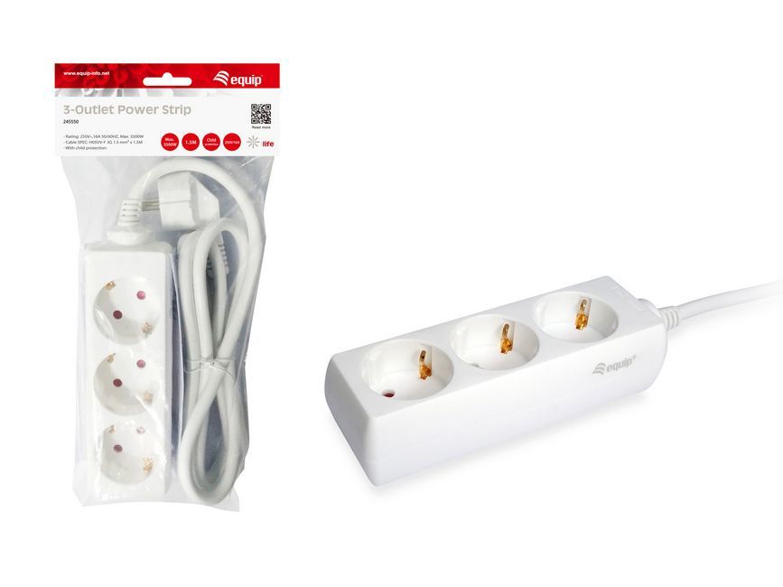 Equip power strip 3-way Schuko 1.5m cable