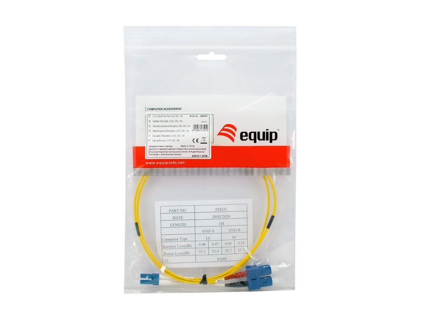 We offer you Equip fiber optic patch cable LC->SC 3.00m single mode duplex OS2 ge polybag always at the best possible price. We can give you a discount of 2% on Equip fiber optic patch cable LC->SC 3.00m single mode duplex OS2 ge polybag if you choose payment in advance on ordering.