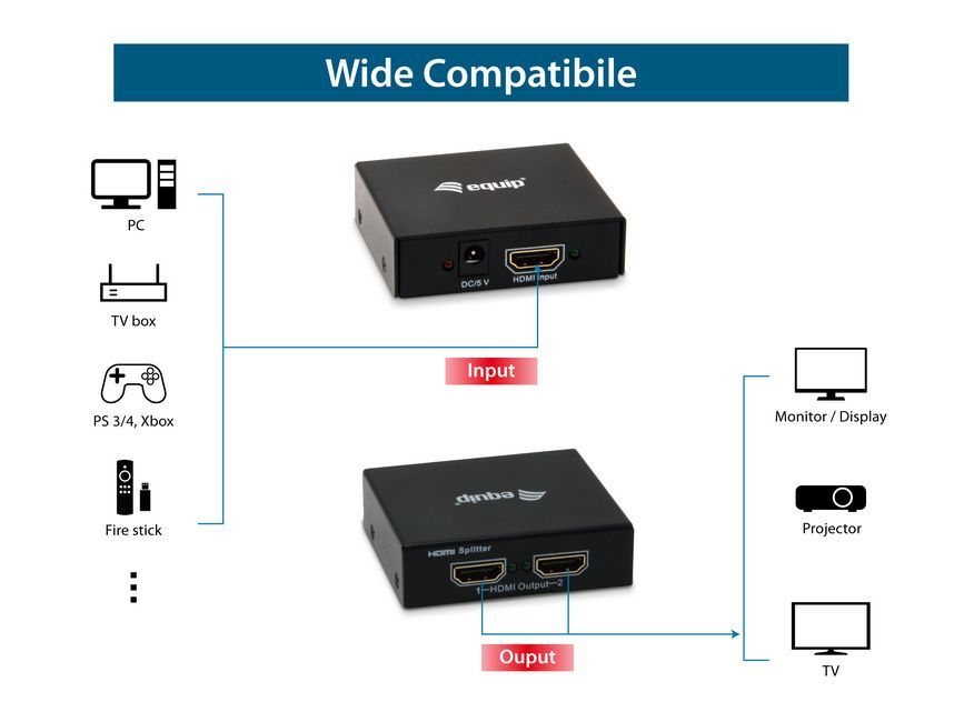 We offer you Equip HDMI splitter 2-port video signal distributor always at the best possible price. We can give you a discount of 2% on Equip HDMI splitter 2-port video signal distributor if you choose payment in advance on ordering.