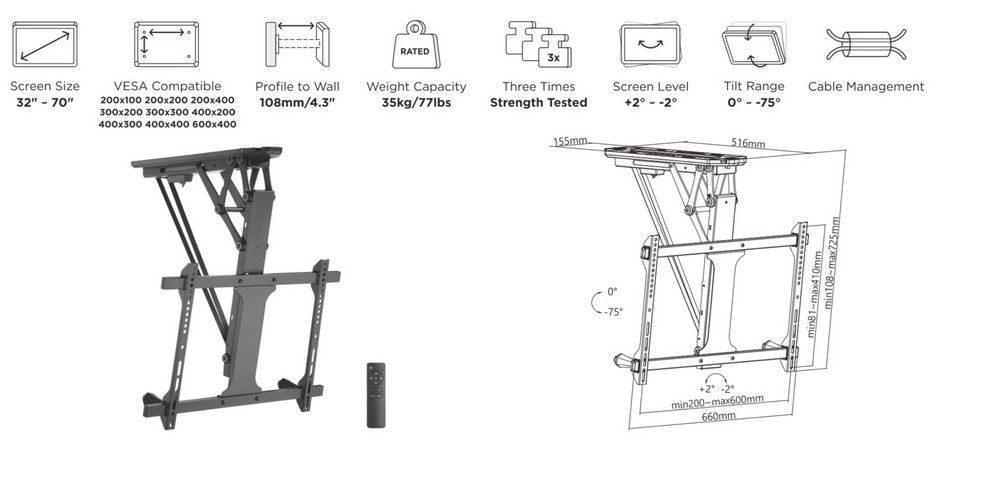 Equip ceiling mount 81,3 cm ( 32 inch )-177,8 cm ( 70 inch )/1TFT 35kg motorized sw