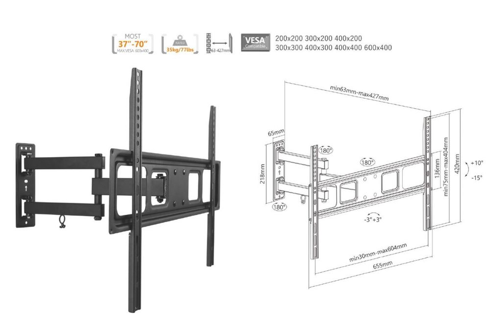 Equip wall mount 94 cm ( 37 inch )-177,8 cm ( 70 inch )/1TFT 35kg 4 joints tilt/swivel sw