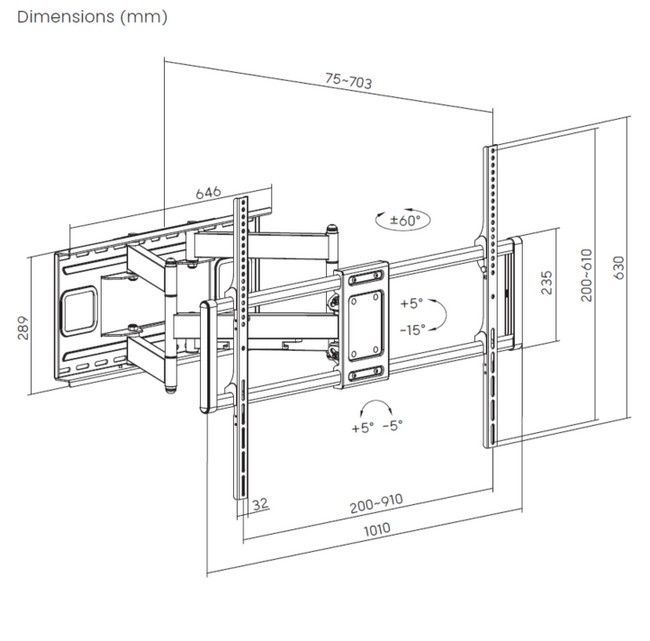 Equip wall mount 152,4 cm ( 60 inch )-304,8 cm ( 120 inch )/1TFT 120kg 2 joints tilt black