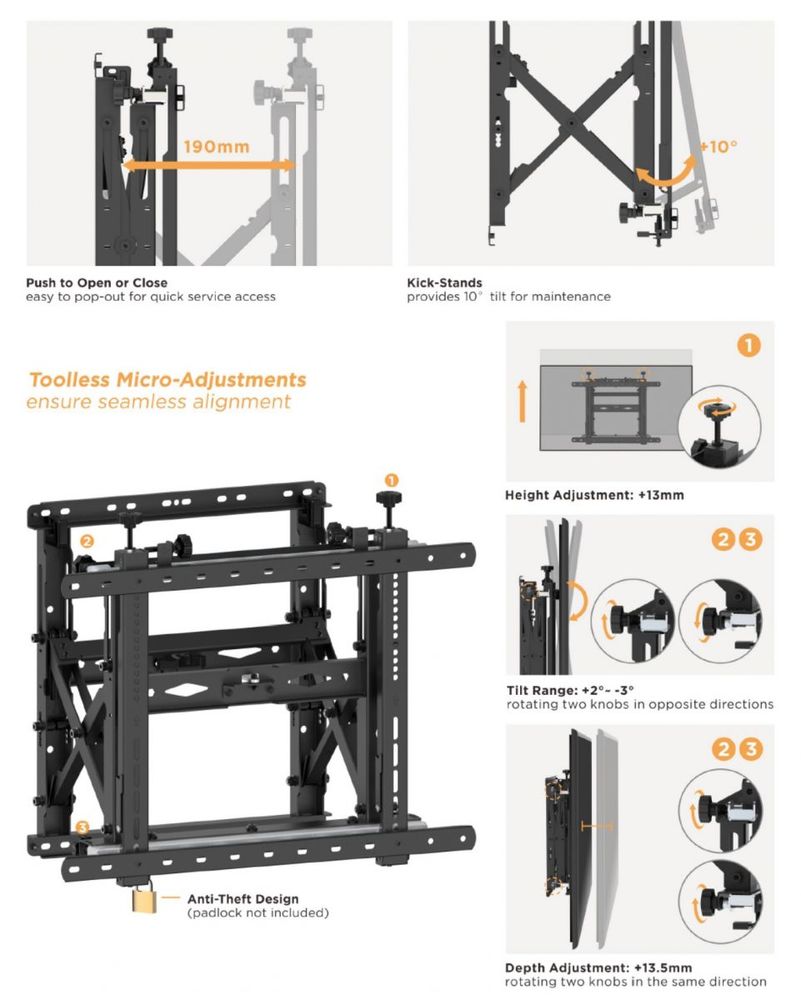 Equip wall mount 114,3 cm ( 45 inch )-177,8 cm ( 70 inch )/1TFT 70kg 1 joint push-in-pop sw