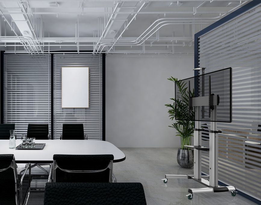 The article Equip floor stand 152,4 cm ( 60 inch )-254 cm ( 100 inch )/1TFT 100kg 2 shelves height sw is currently in stock