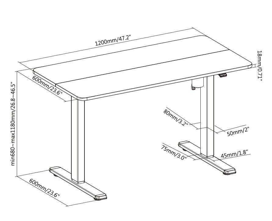 Equip electr. height adjustable Table frame 68-118cm 70kg sw (forwarding)