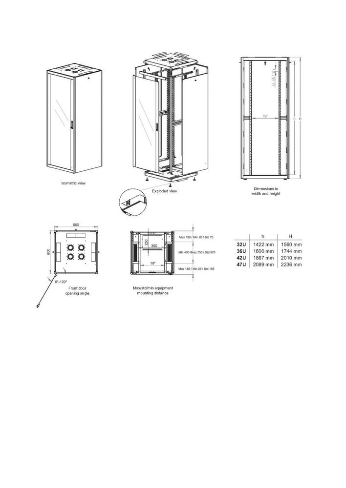 Equip 48,3 cm ( 19 inch ) Serverschrank Glastür BF 800x 800mm 32HE grau