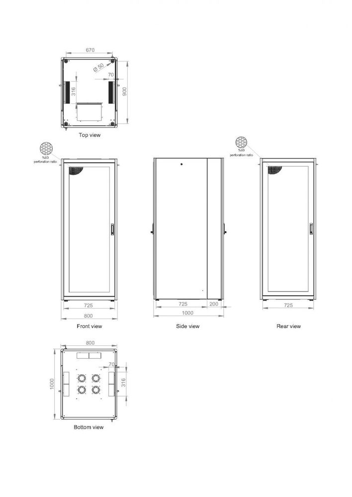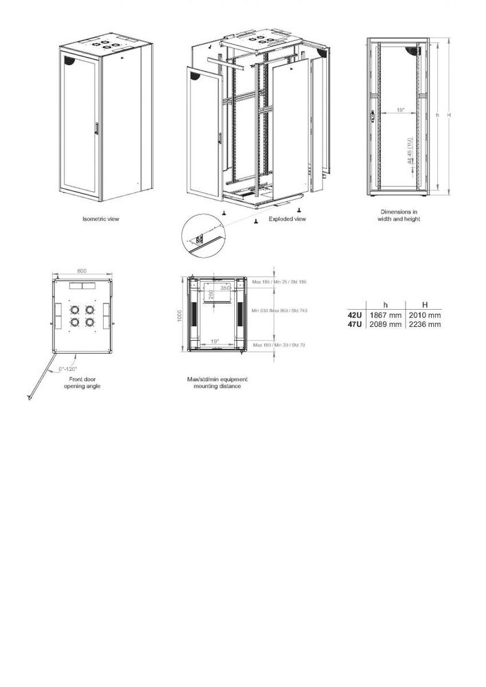 Equip 48,3 cm ( 19 inch ) Serverschrank Stahltür BF 800x1000mm 42HE grau
